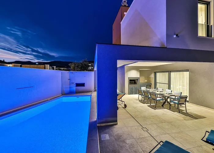 La Villa Miholina - With Heated Swimming Pool Trogir, situada a 3 km de Park Ex Fanfogna, ofrece una terraza con vistas a las montañas. La villa está situada no muy lejos de Beach Vela Draga y cuenta con mesa de billar y un jardín para mayor disfrute.